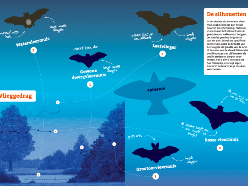 Vleermuizen leven het liefst in buurten met veel groen, water en een donkere nacht. De aanwezigheid van vleermuizen is dus een goede graadmeter voor hoe duurzaam en natuurrijk een buurt is. Daarom onderzoeken we in mei de verspreiding van vleermuizen tijdens de Vleermuistuintelling.